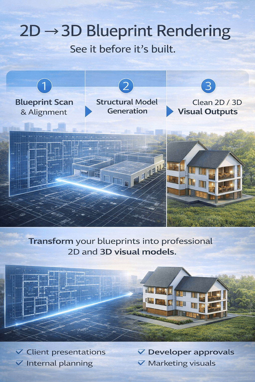 Point your phone at a room or upload blueprints. AI extracts every dimension automatically.